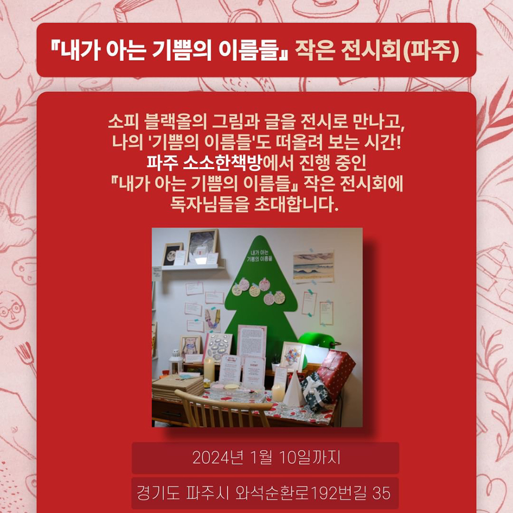 [전시 안내] 『내가 아는 기쁨의 이름들』 작은 전시회에 독자 여러분을 초대합니다. (경기도)