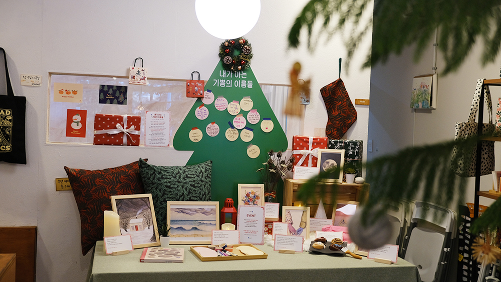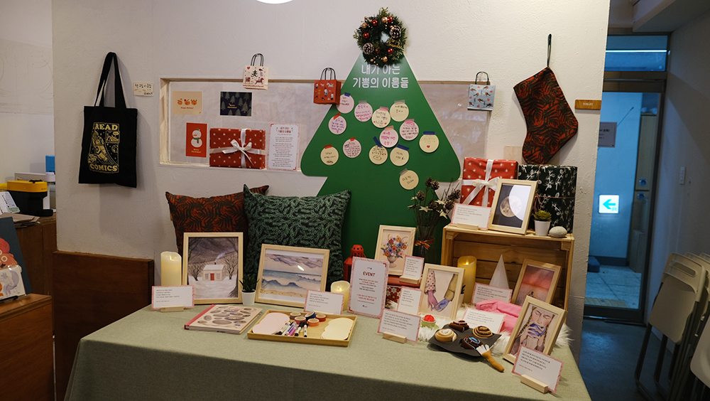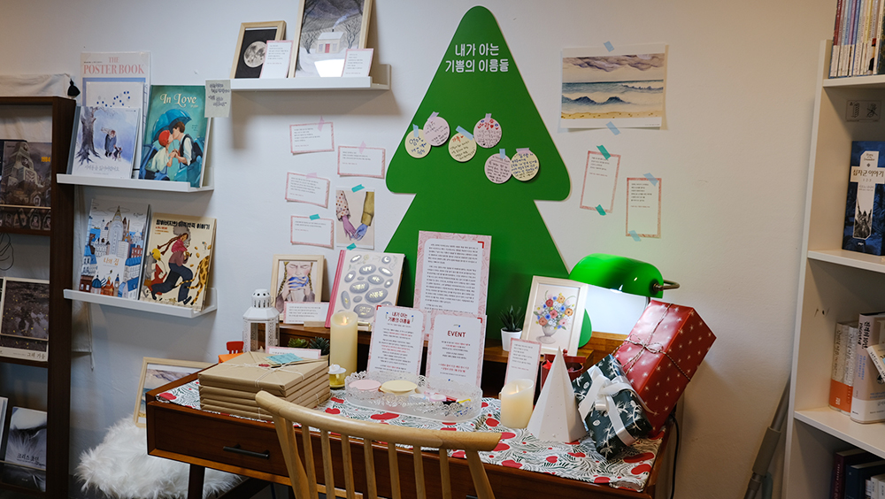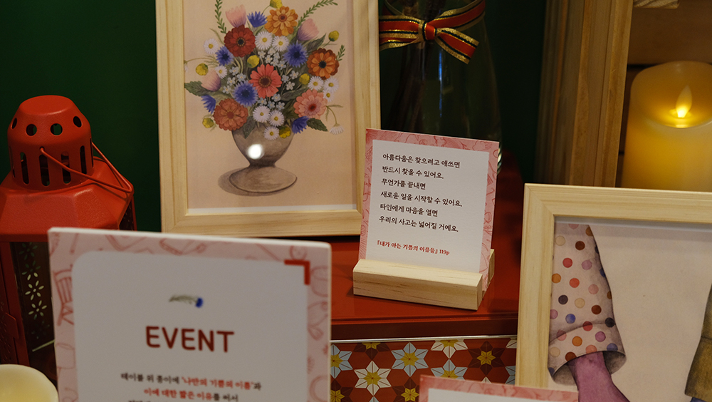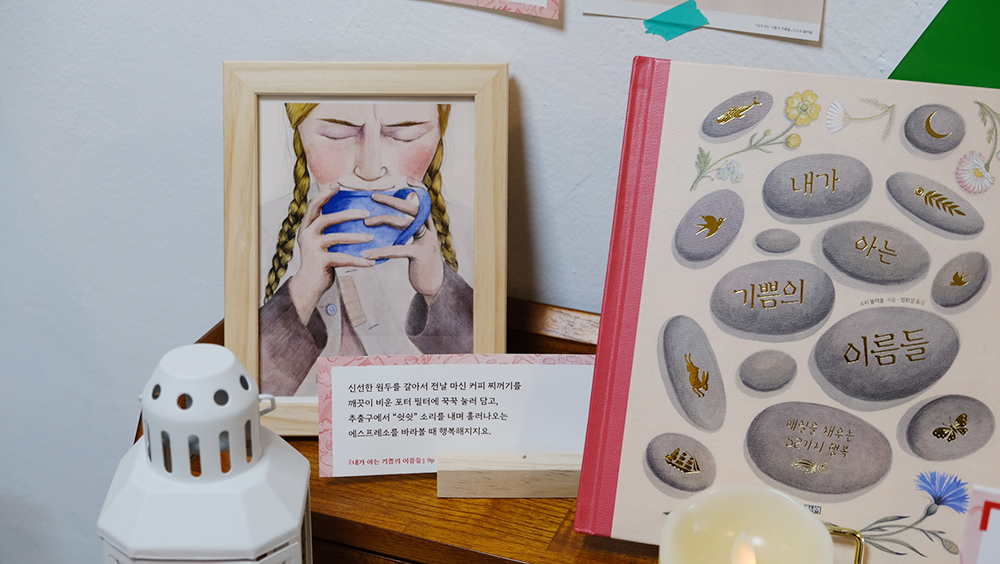 이 공간에 『내가 아는 기쁨의 이름들』 작은 전시가 진행 중인데요.