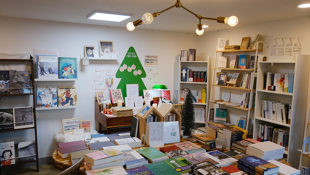 아늑한 공간에 빼곡히 다양한 책들이 자리하고 있고,