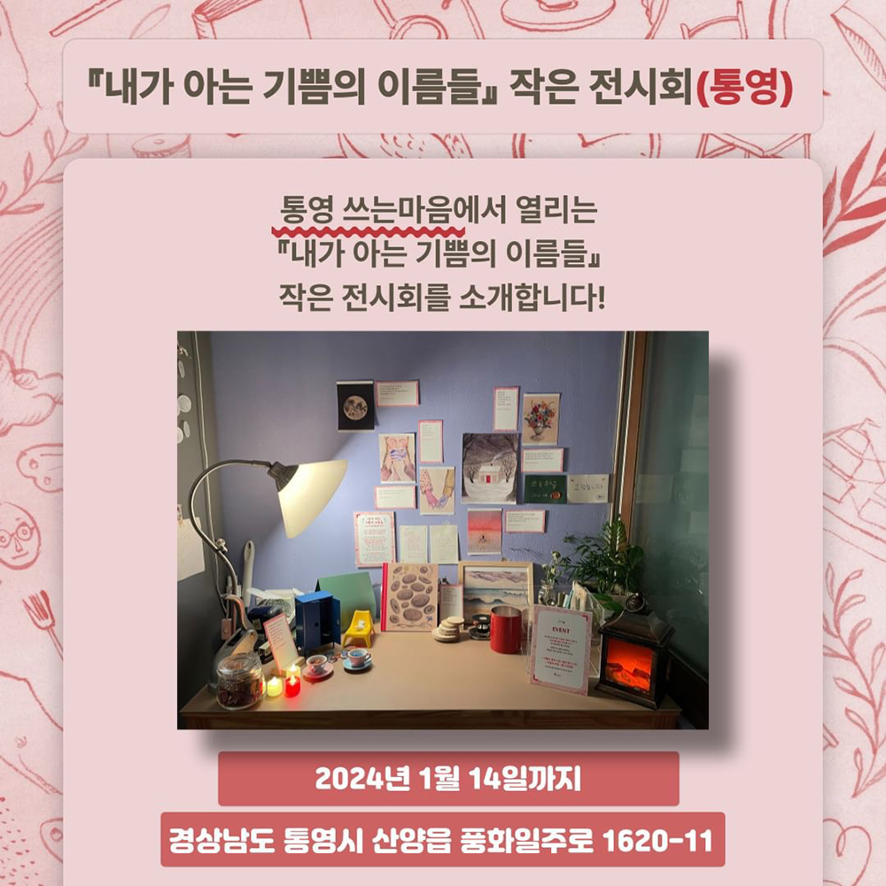 [전시 안내] 『내가 아는 기쁨의 이름들』작은 전시회에 초대합니다. (통영 쓰는 마음)