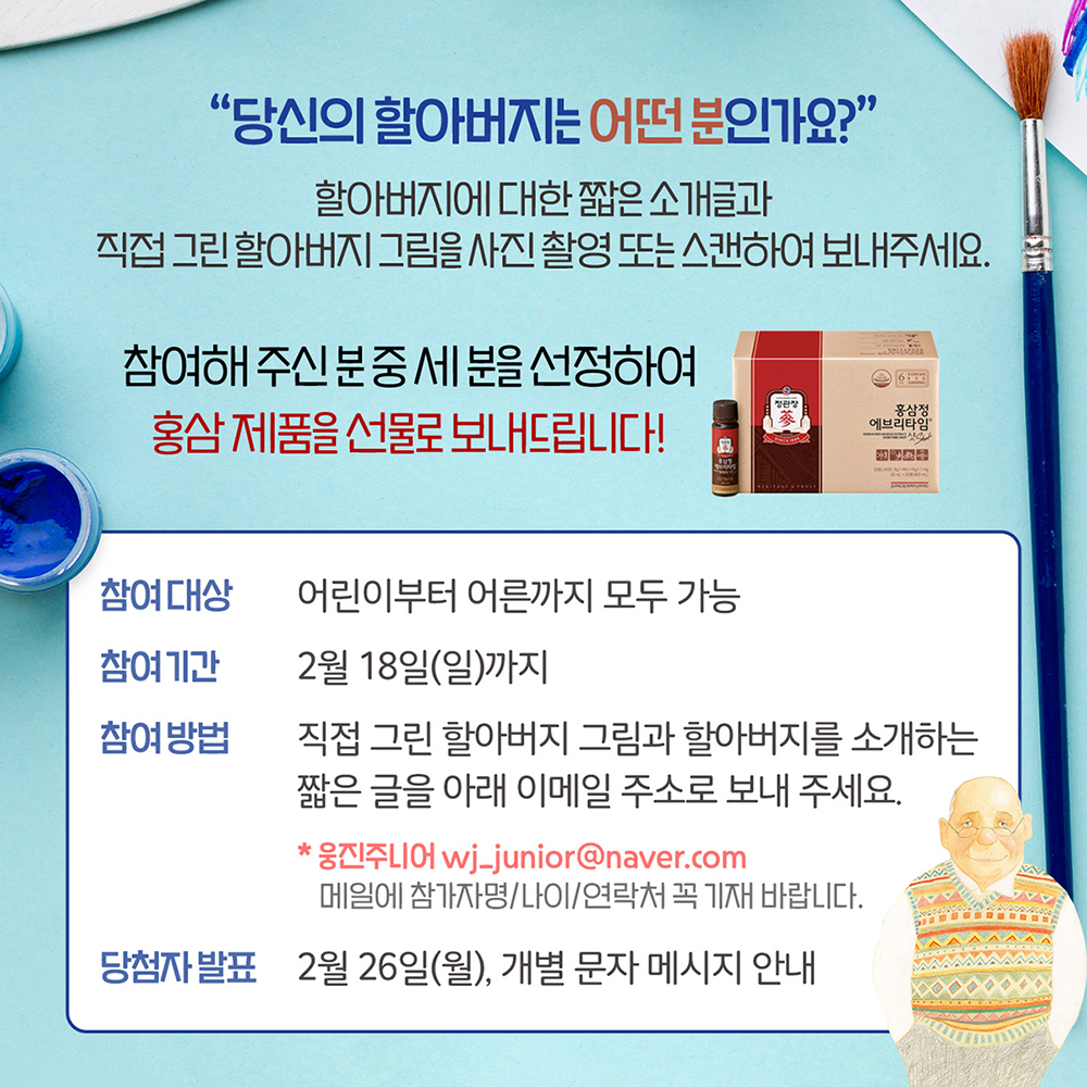 직접 그린 할아버지의 그림을 사진 촬영 또는 스캔해서 보내주세요.