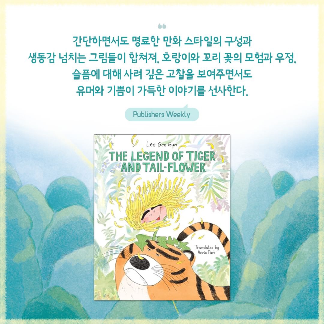 간단하면서도 명료한 만화 스타일의 구성과 생동감 넘치는 그림들이 합쳐져, 호랑이와 꼬리꽃의 모험과 우정, 슬픔에 대해 사려 깊은 고찰을 보여주면서도 유머와 기쁨이 가득한 이야기를 선사하는 그림책이다."