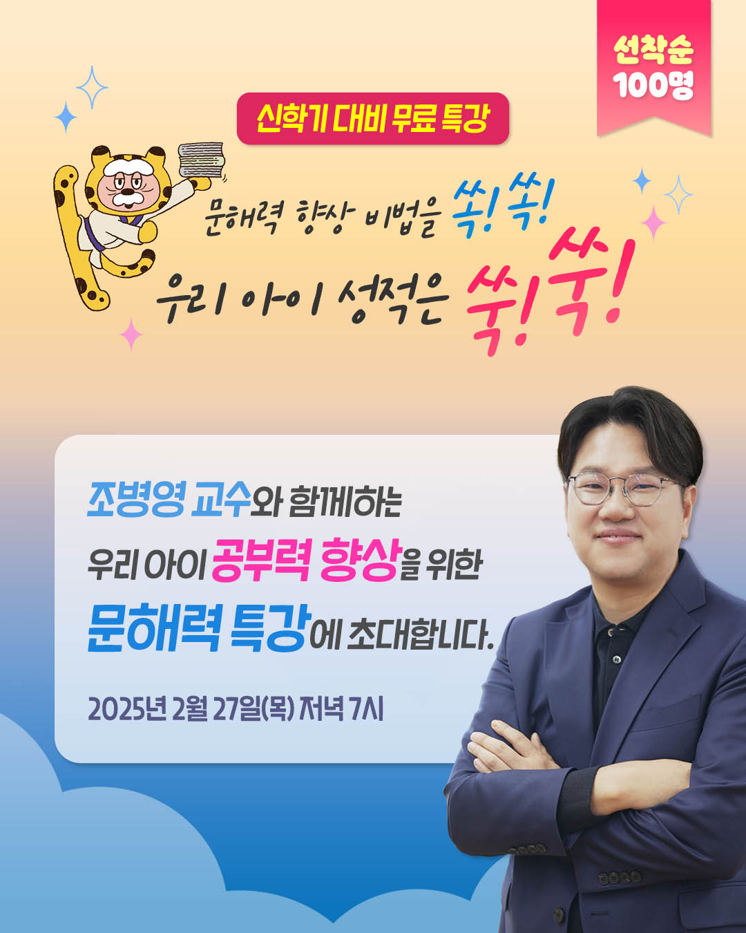 [무료 특강] 문해력 전문가 조병영 교수가 '문해력 향상 핵심 비법만 쏙쏙 뽑아 알려주는 겨울방학 무료 특강' 안내 (2/27, 저녁 7시)