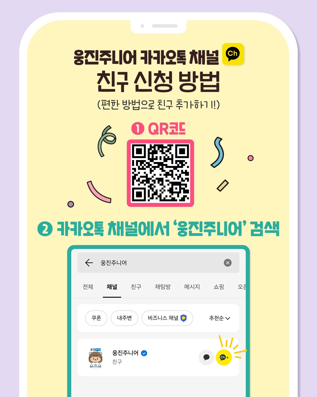 2) 카카오톡 채널에서 '웅진주니어' 검색