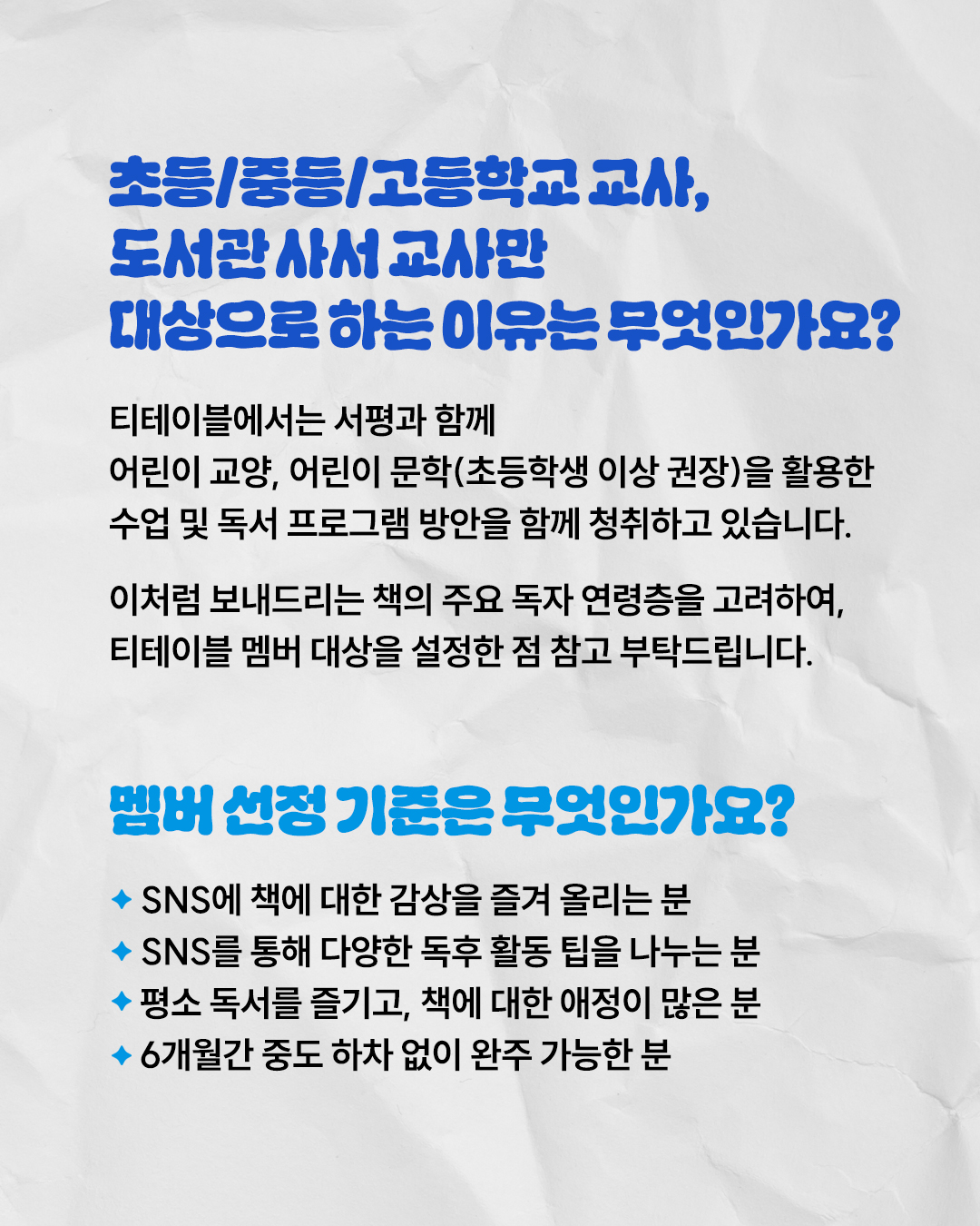 * 대상: 초/중/고등학교 교사, 도서관 사서 교사