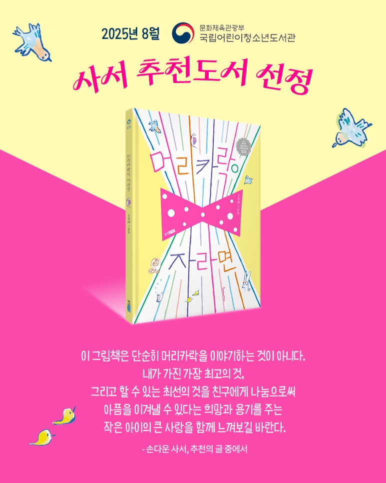 [선정 소식] 국립어린이청소년도서관 25년 8월 사서 추천도서 『머리카락이 자라면』