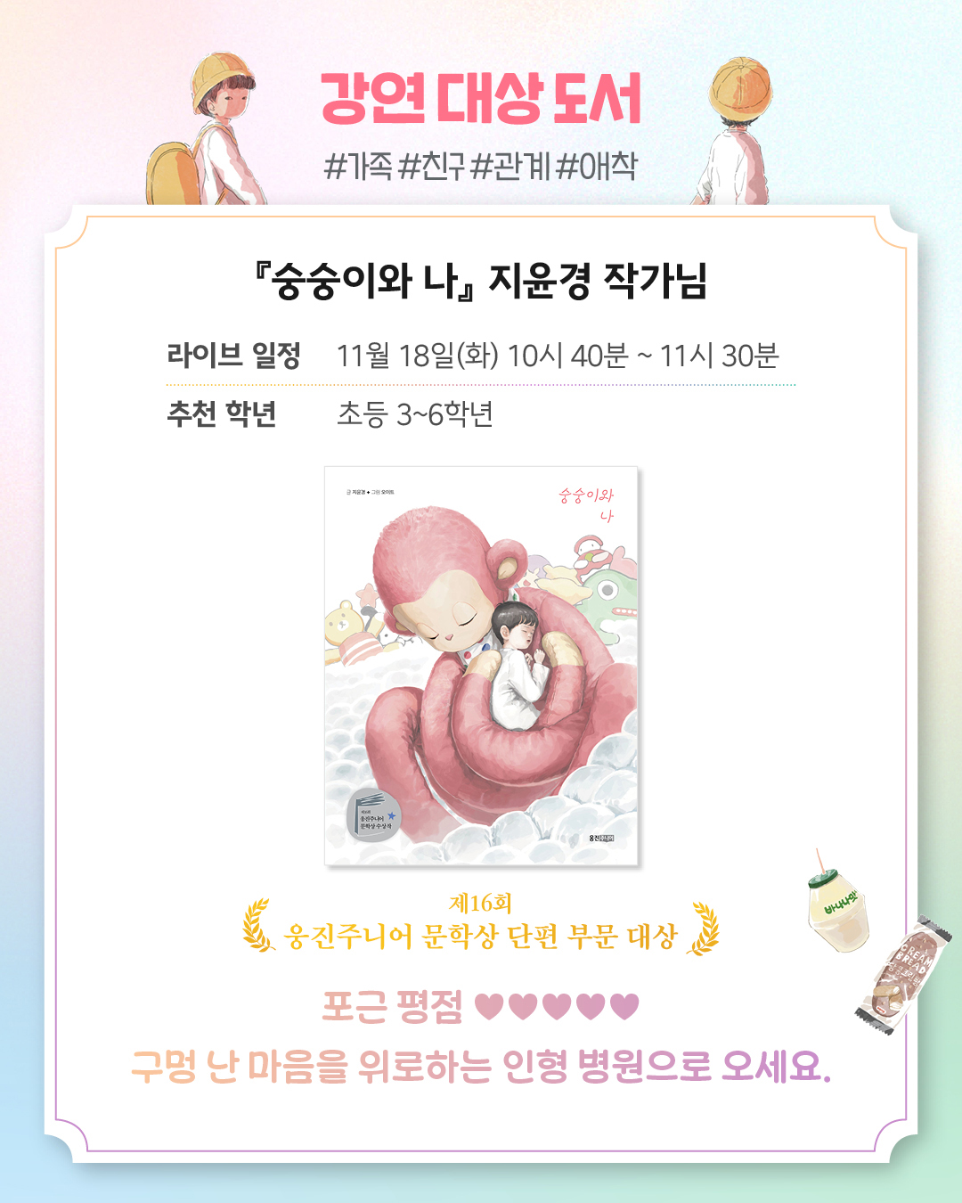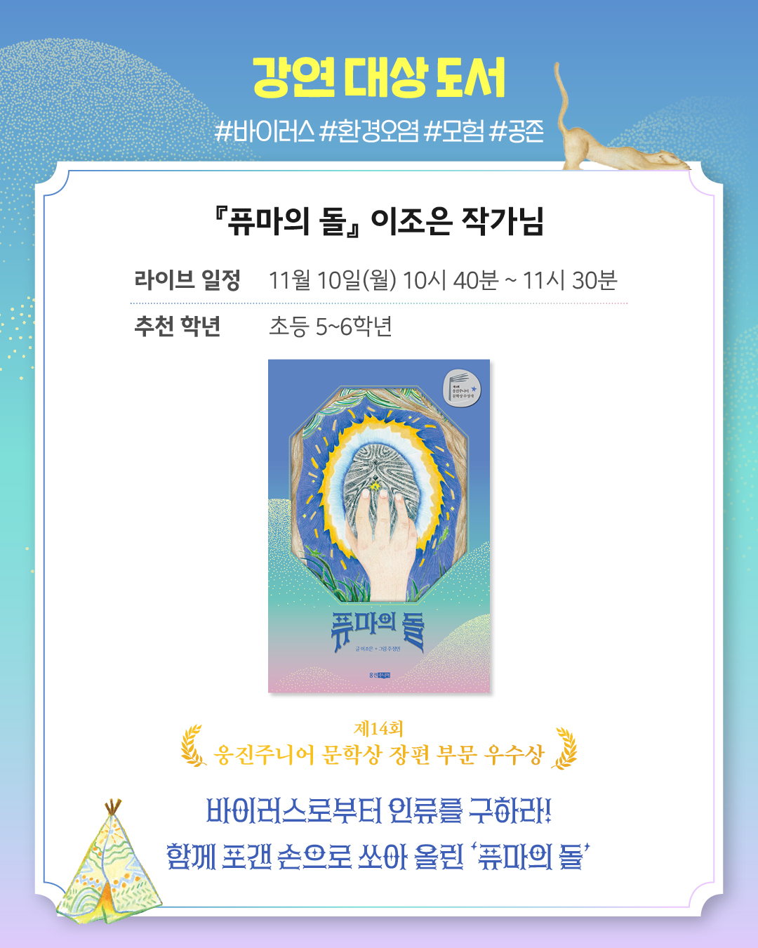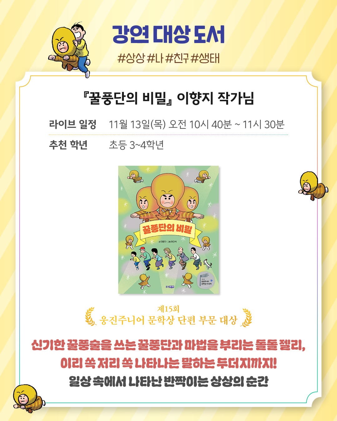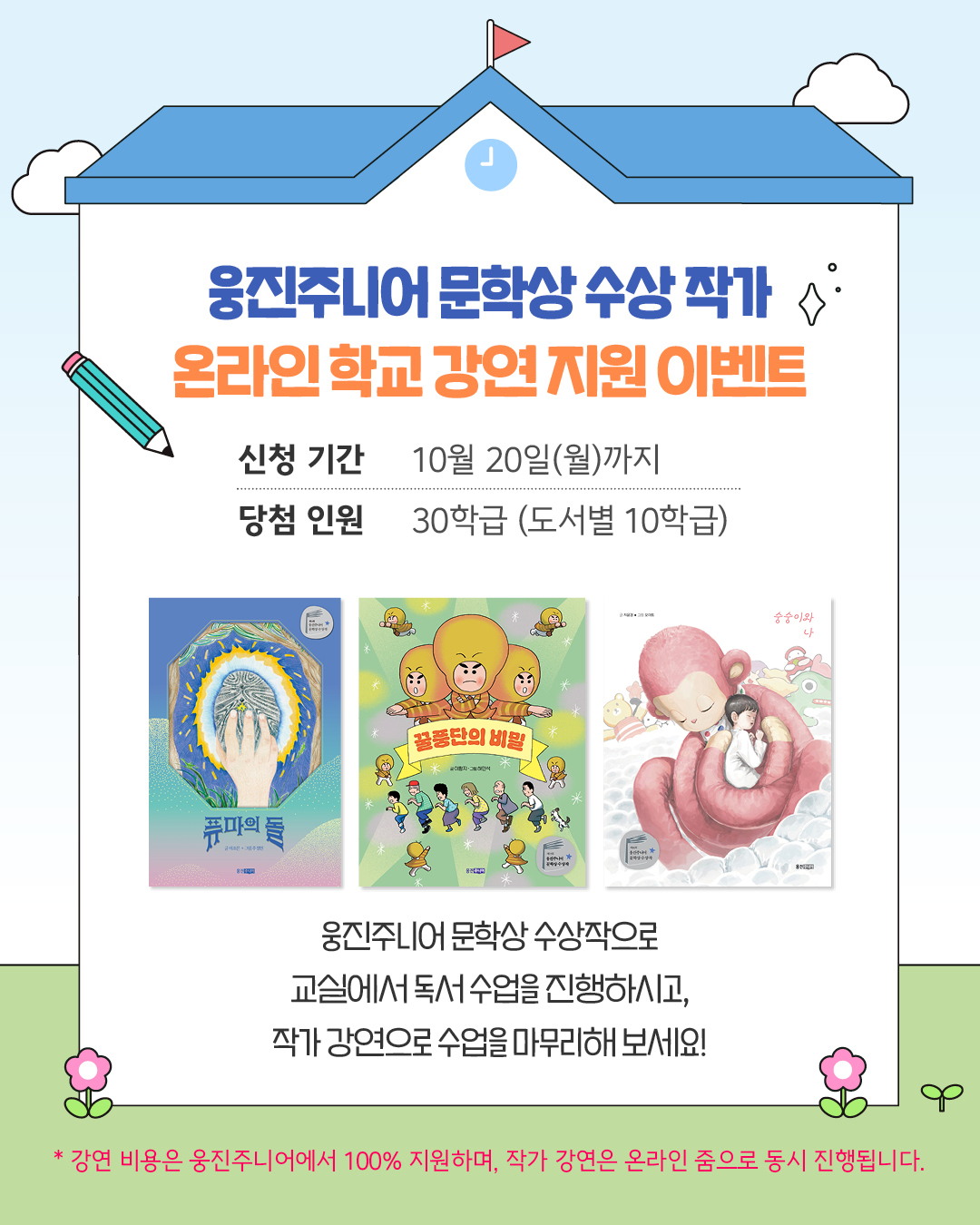 [이벤트] 웅진주니어 문학상 수상 작가 온라인 학교 강연 지원 이벤트 (~10/20)