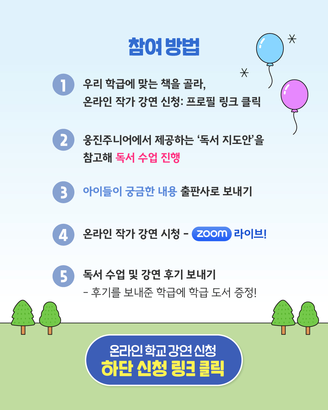 * 강연 비용은 웅진주니어에서 100% 지원하며, 별도 참여 비용은 없습니다.